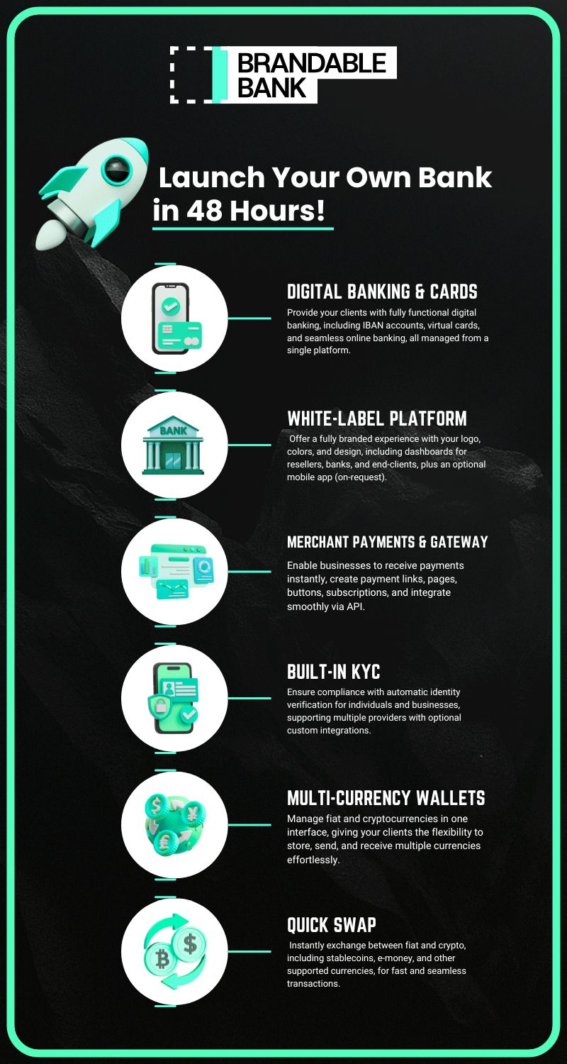 Enable your clients access to your very own products, such as: Forex Services, Asset Management, Bonds, Deposits, Certificates etc.